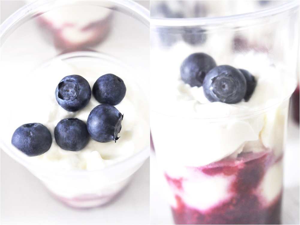 White chocolate mousse with fresh raspberries & blueberries