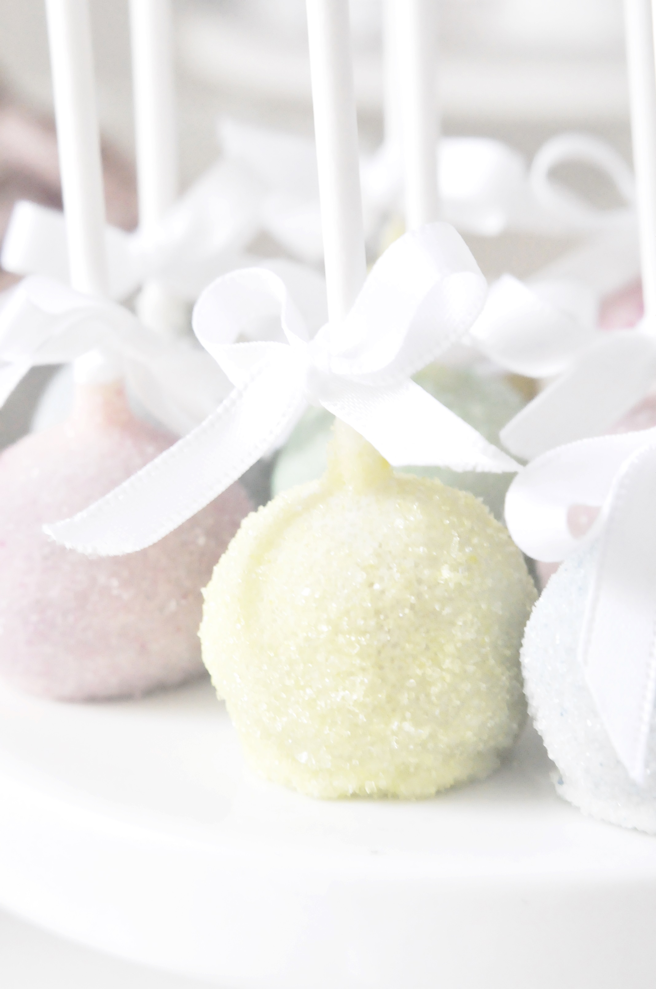 Chocolate chip cookie cake pops doppade i vitchoklad och pastellfärgat socker